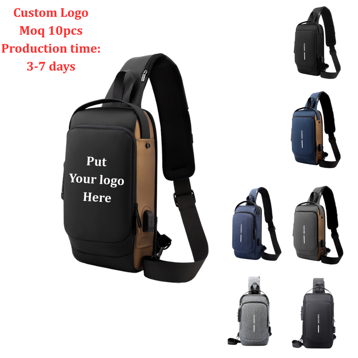 Borsa a Tracolla da Uomo di Tendenza 2025 Impermeabile da Petto per Moto e Bici con Lucchetto Logo Personalizzato USB Antifurto