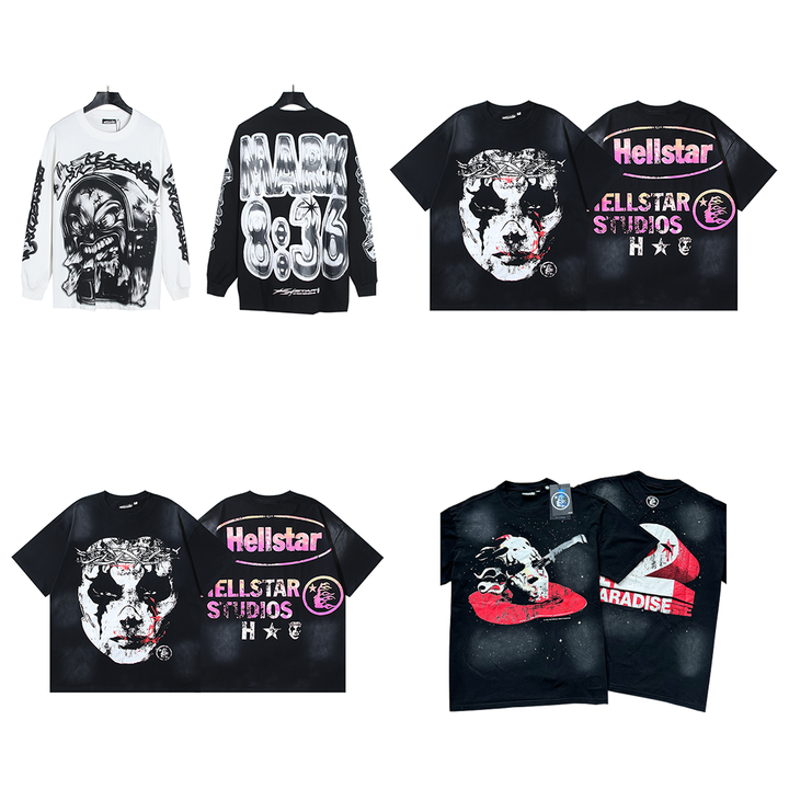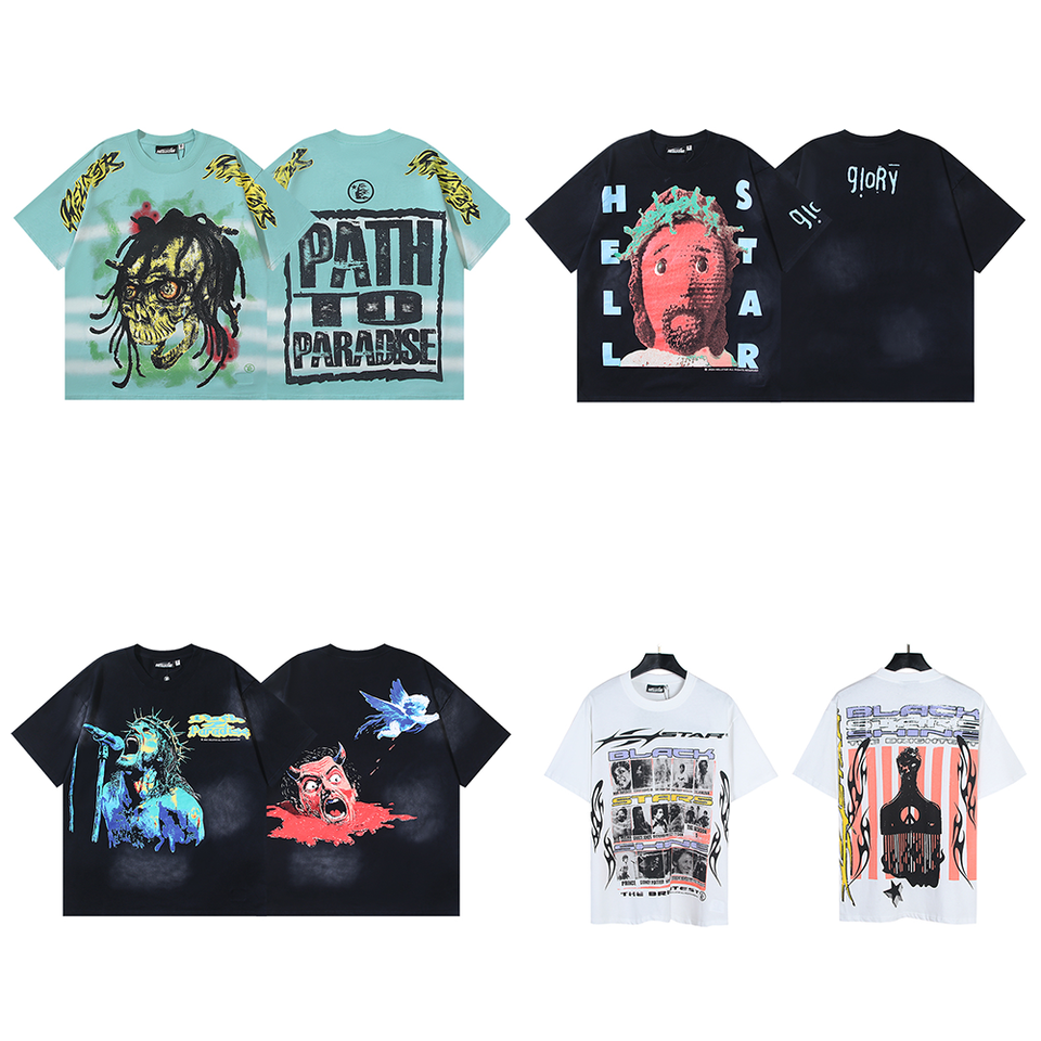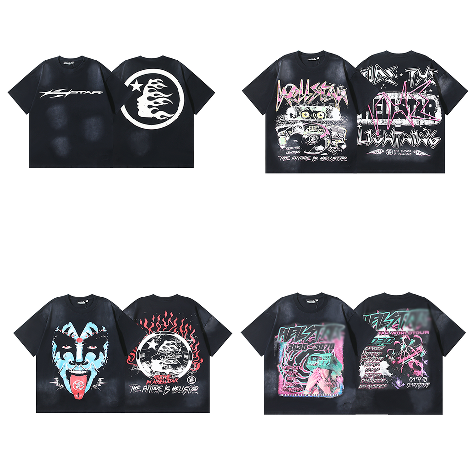 2025 Men's Hell Short Sleeve Vintage Printed Star T-Shirt High Quality 100% Cotton Wearable Oversized Drop Hip Hop 260 Grams