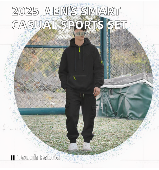 2025 Men's Smart Casual Outdoor Sports Set Autumn/Winter Fitness Jogging Clothing Knitted Warm Hoodie Winter Cycling Printed