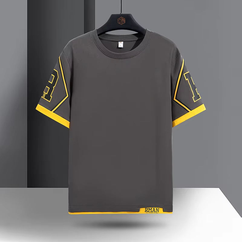 2025 Men's Trendy Velour Short-Sleeved T-Shirt Formal Style for Spring Summer Youth Couples' Printed Thin Upper Body Clothing
