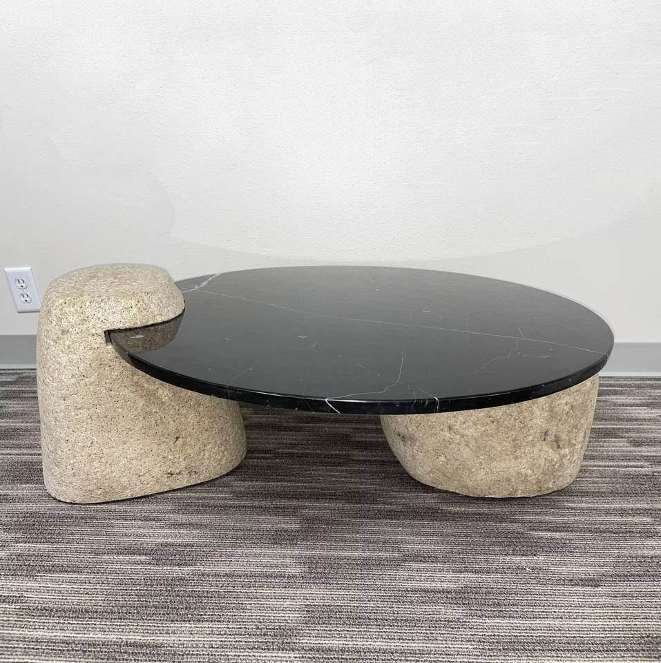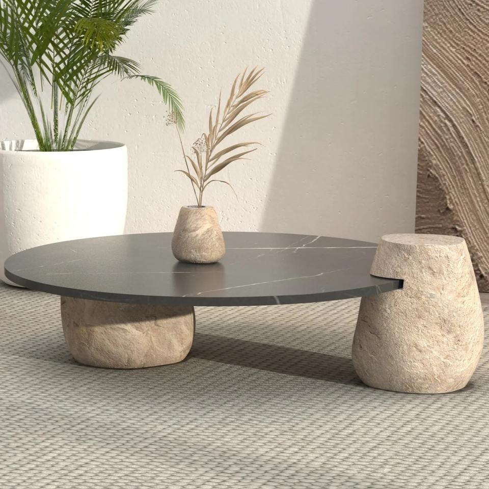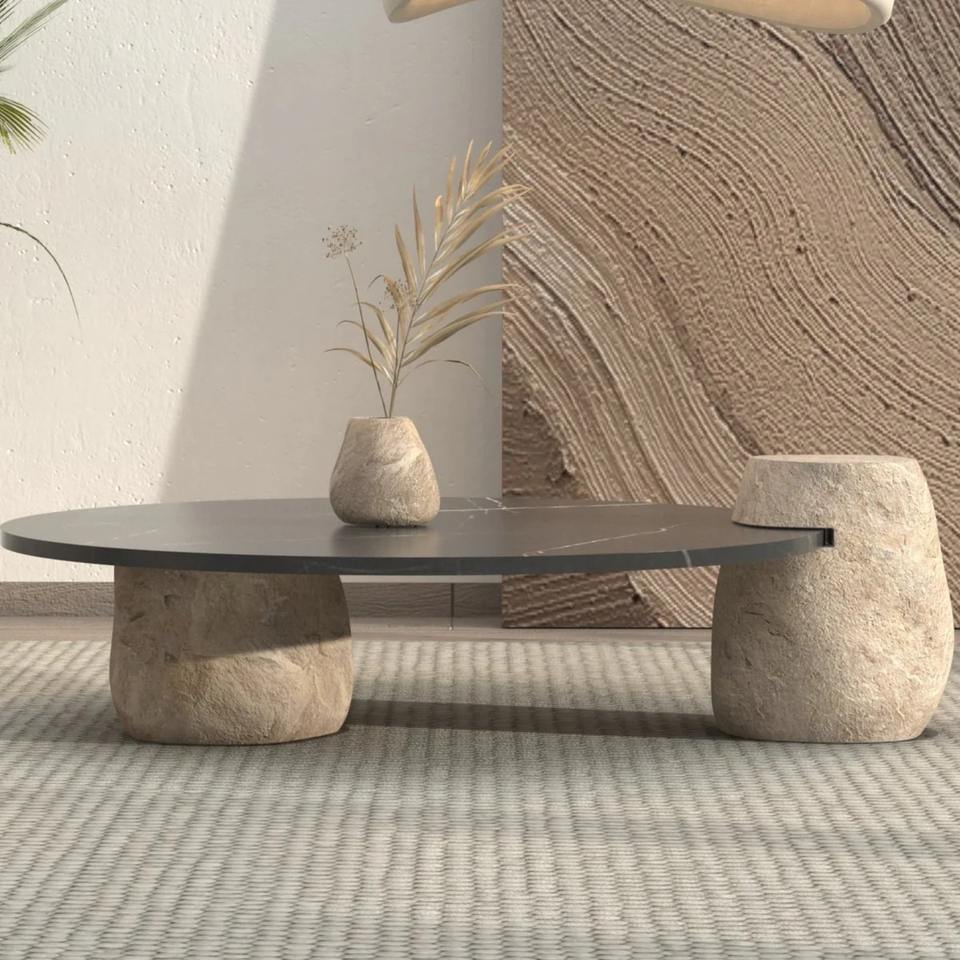 Tavolino da Salotto di Nuovo Design 2025, Tavolino Laterale Nordico Moderno di Lusso con Base in Pietra e Piano in Marmo