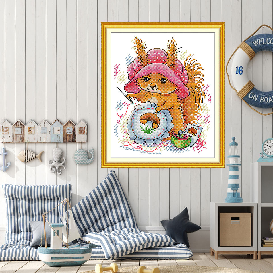 2025 NKF lo scoiattolo che ama ricamare HD stampato punto croce set di ricamo decorazione per la casa Kit uncinetto 11CT 14CT Aida