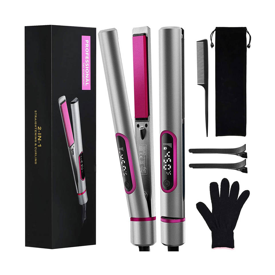 2025 New 2in1 Flat Iron Hair Straightener and Curler Long Ceramic Plate 3D Floating Plate for Hair Styling