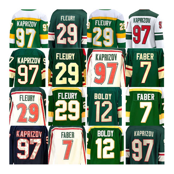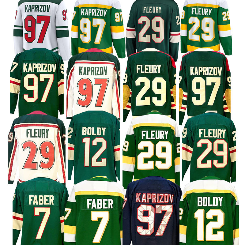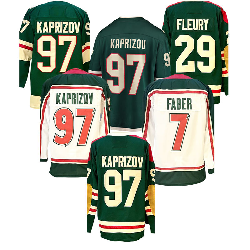 2025 nuova maglia da Hockey su ghiaccio cucita ALL Style Minnesota 97 Kirill Kaprizov 29 Marc-Andre Fleury 7 Brock Faber