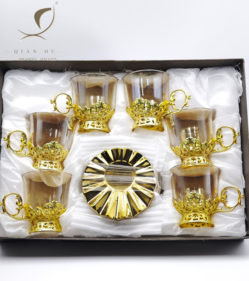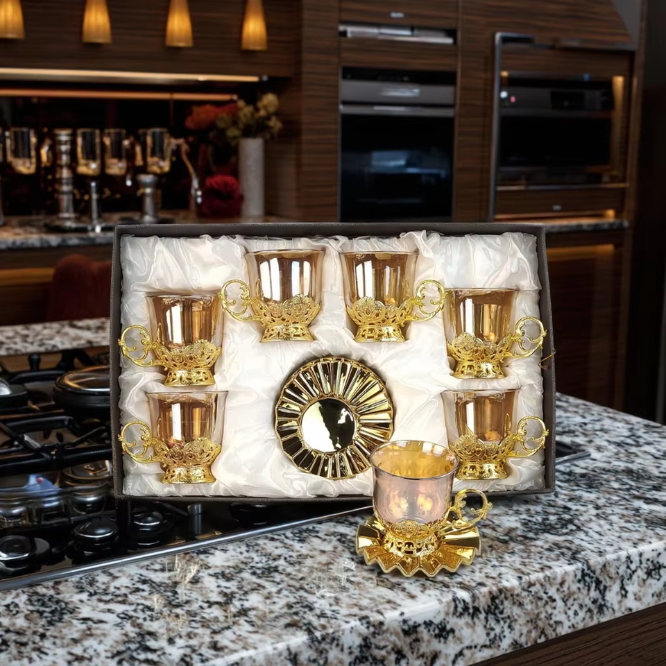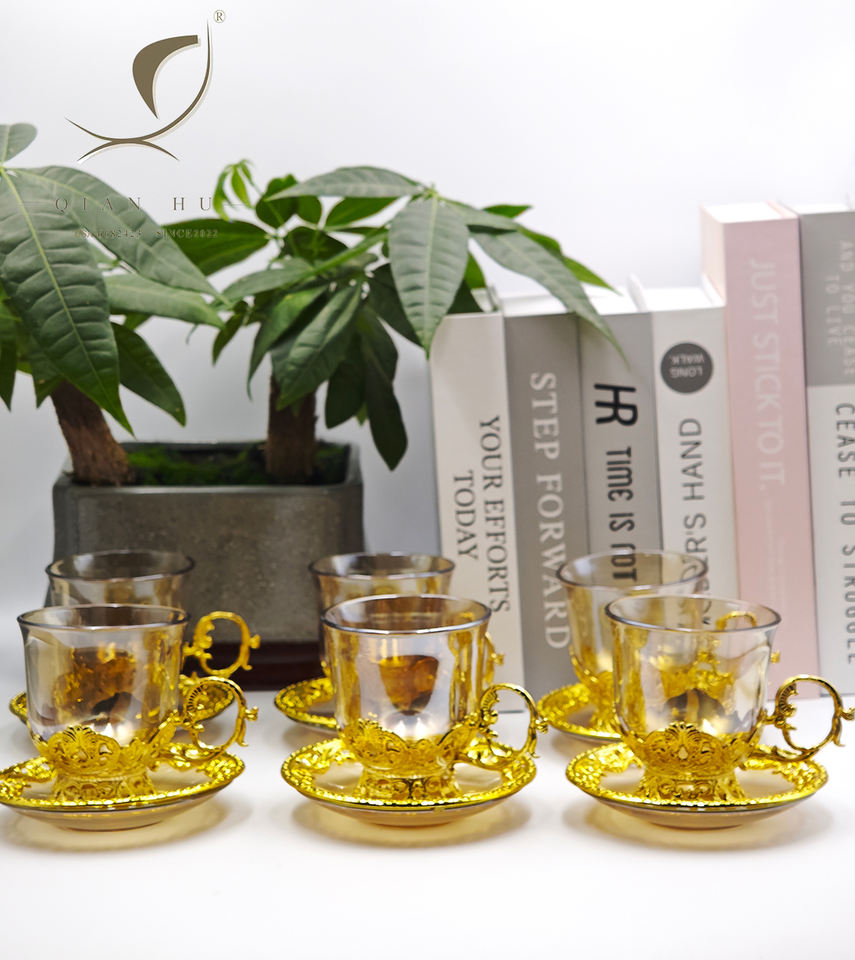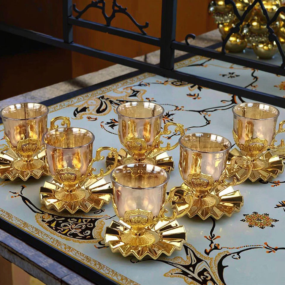 2025 nuovo arrivo di alta qualità placcato oro ceramica tè tazza di caffè set di lusso ispirato turco caffè Espresso in vita tazze di vetro