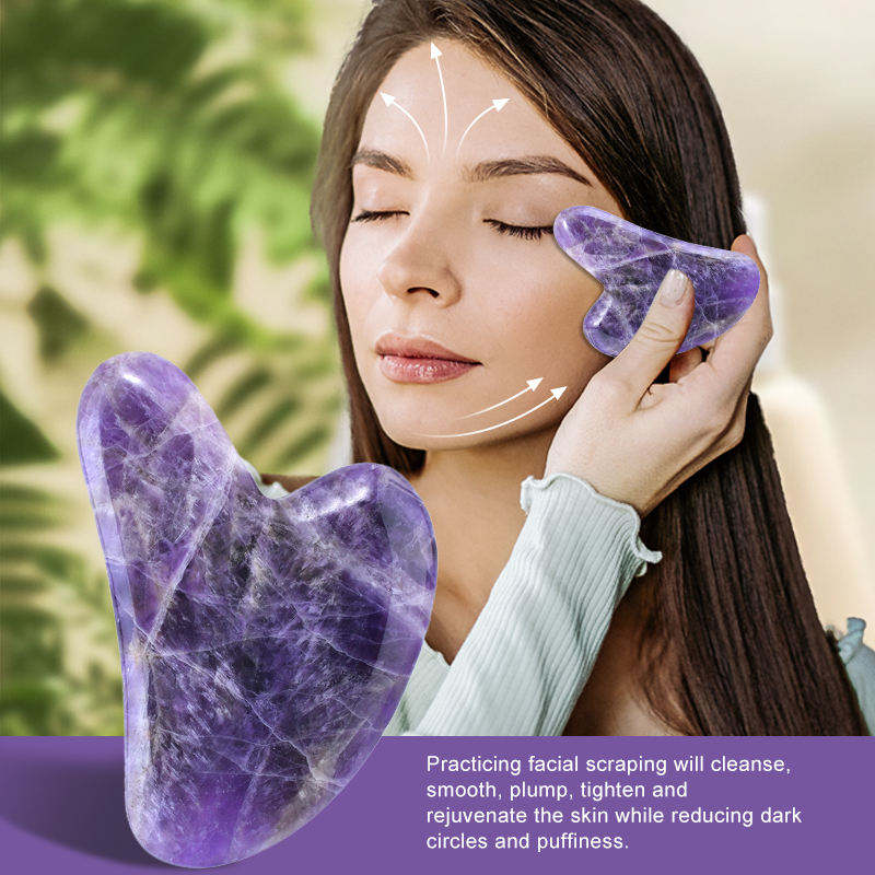2025 New Arrival Wholesale Purple Crystal Stone Body Guasha Face Skin Care Tool Natural Amethyst Facial Gua Sha Massager