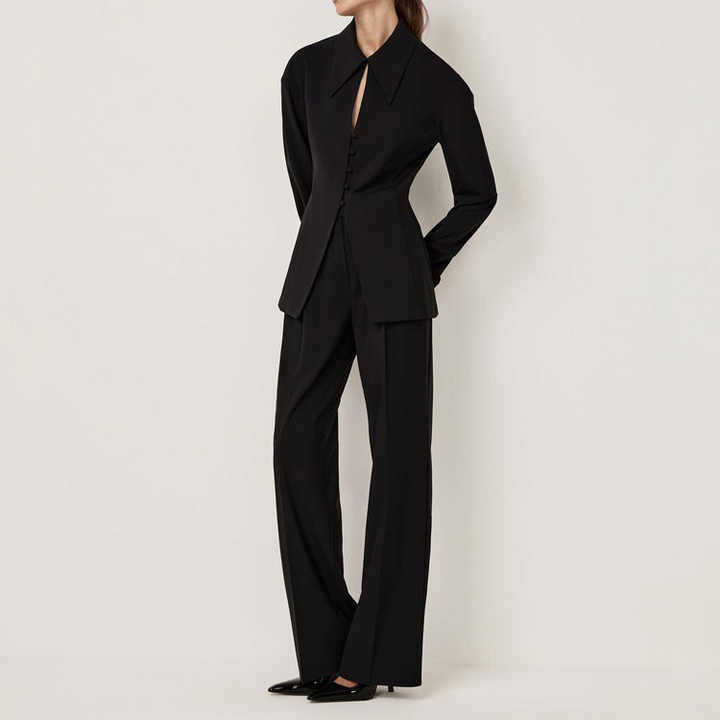 Nuovo arrivo 2025 giacca da donna Slim Fit su misura nera clessidra Blazer e pantaloni 2 pezzi