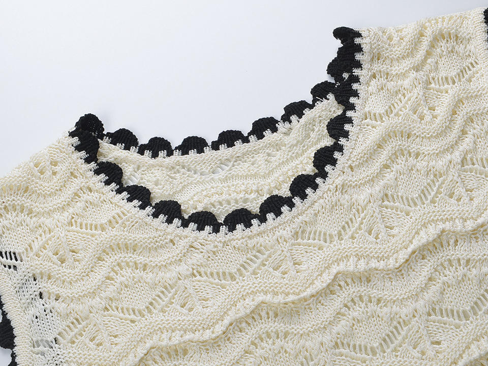 2025 New Beige White Crochet Lace Women's Knitted Tops Round Neck Sleeveless Casual Thin Tops with Hollow Out Fashion Style
