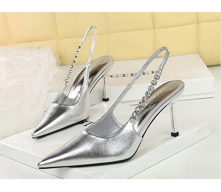 2025 New Black Crystal Rhinestone Sandals Shiny Women Shoes Slingback Pointed Toe Heels