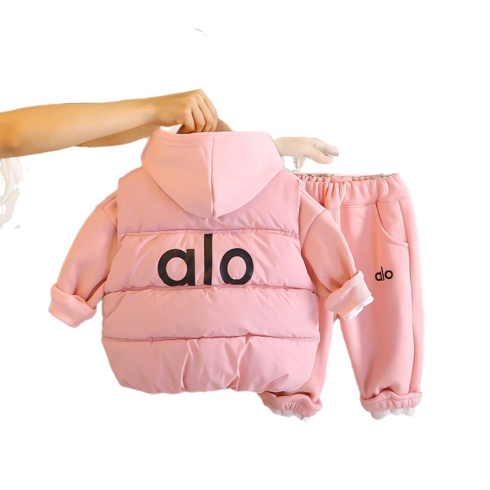 2025 New Boys Girls Winter Velvet Three-Piece Set Casual Warm Hooded Vest Thickened Suit Small Medium-sized Pattern for Children