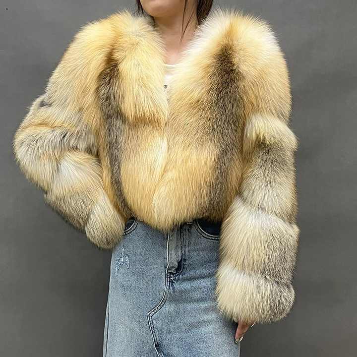 2025 New Coming Ladies Luxury Winter Jacket V Neck Genuine Fox Fur Coats