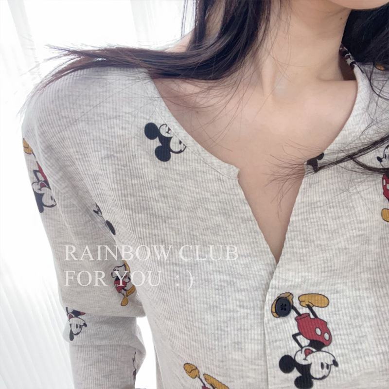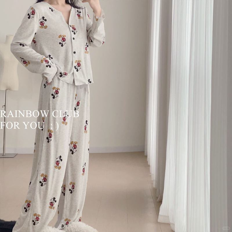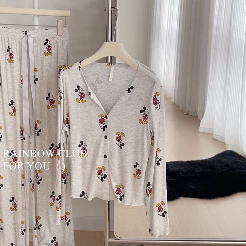 Nuovo Set Pigiama in Raso Stile Carino Mickey 2025, Abbigliamento da Casa in Cotone con Vita Elastica e Maniche Lunghe per Donna, Estate-Autunno