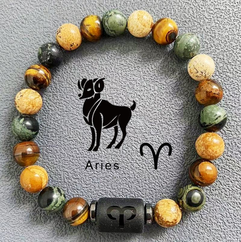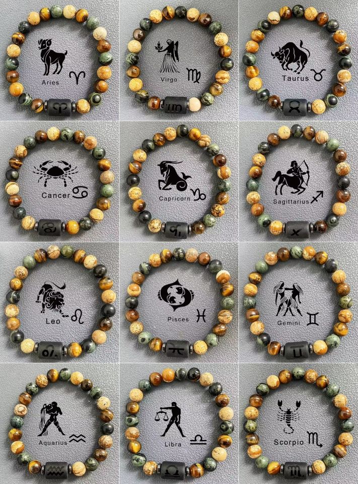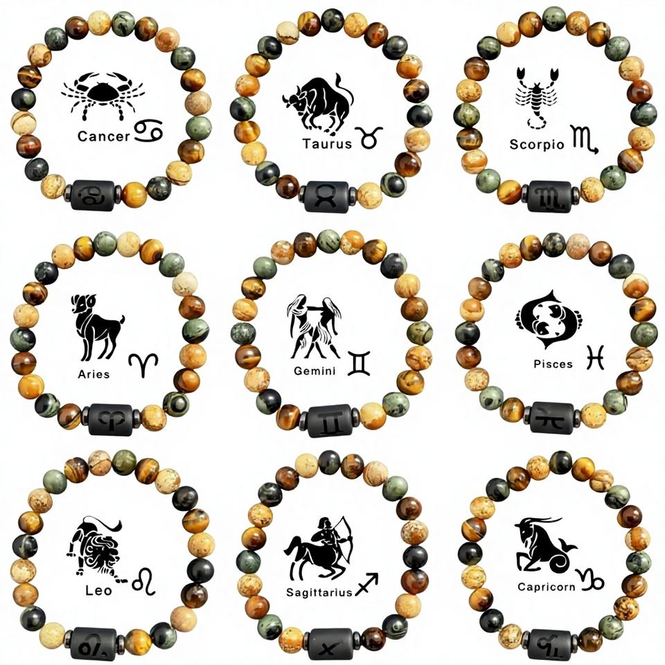 Nuovo Design 2025: Bracciali con 12 Segni Zodiacali per Uomo e Donna, Occhio di Tigre, Pietra Lavica, Braccialetto in Cristallo per Regalo