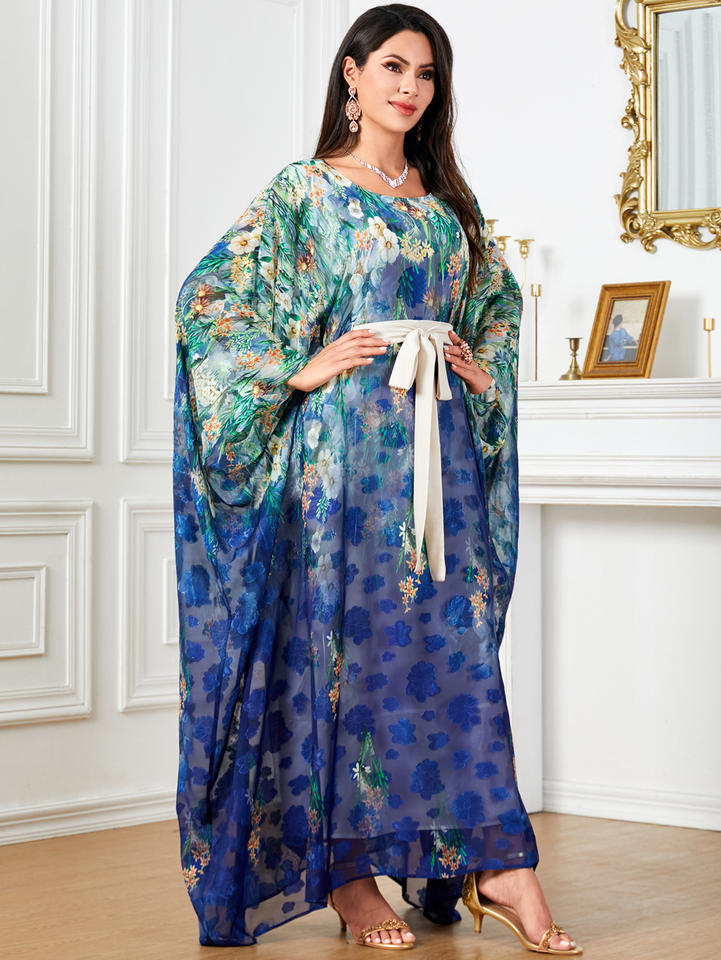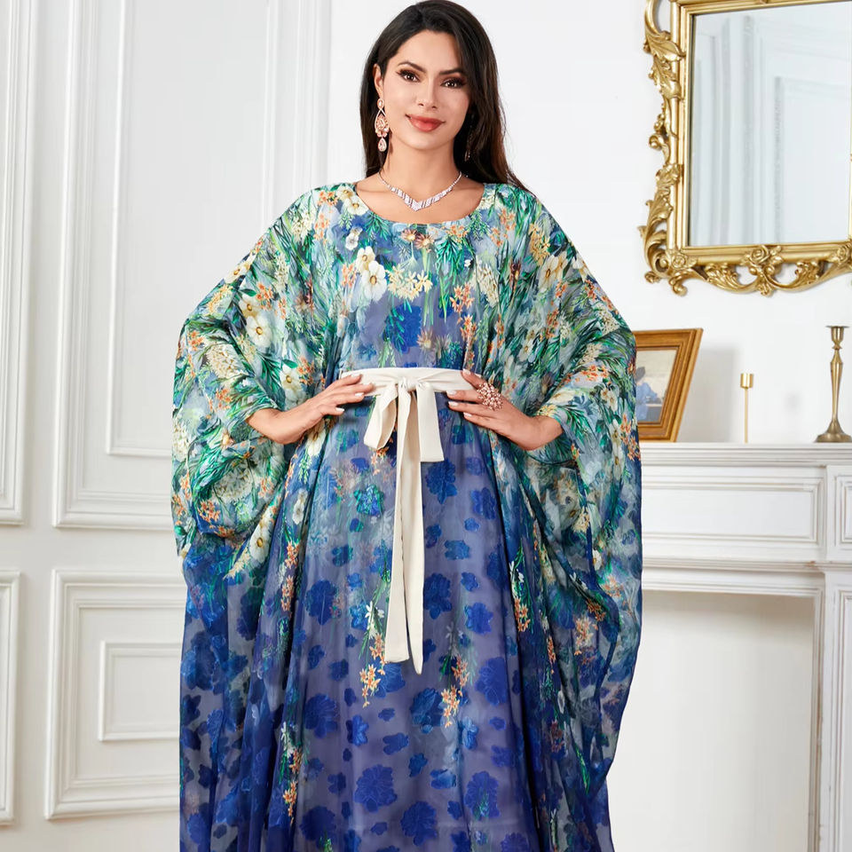 2025 New Design Dubai Turkey Romantic Ladies Abaya Bat-sleeve Floral-printed Gown Women Abaya Islamic Robe Adults Girls Holiday