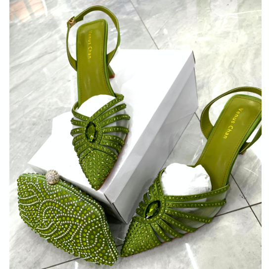 2025 nuovo Design italiano donna abbinata scarpe e borsa Set decorato con tacco alto strass sandali scarpe portafoglio Set