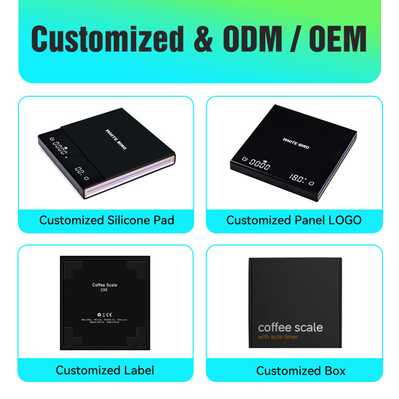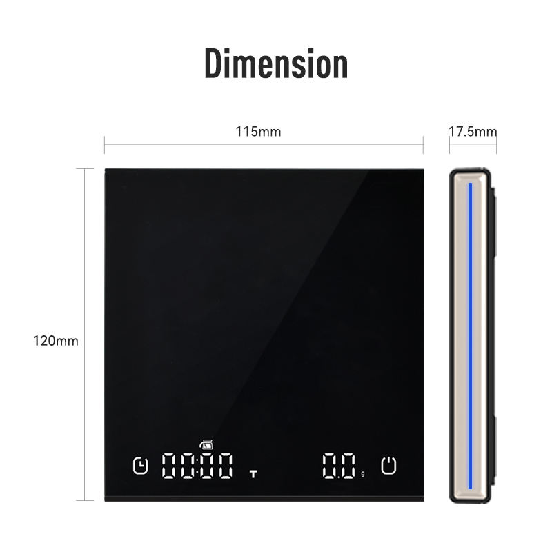 2025 New Design Portable Coffee Scale Type-C Charging Electronic Coffee Scale With Side Ambient Light Espresso Scale