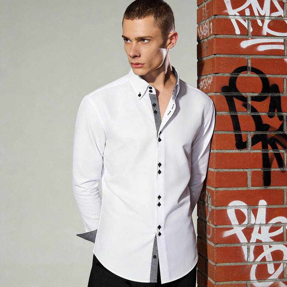 Nuove Camicie Casual da Uomo di Alta Gamma Europee e Americane 2025, a Maniche Lunghe, Senza Stiratura, per Abbigliamento Formale da Lavoro, con Elasticità, per il Commercio Estero