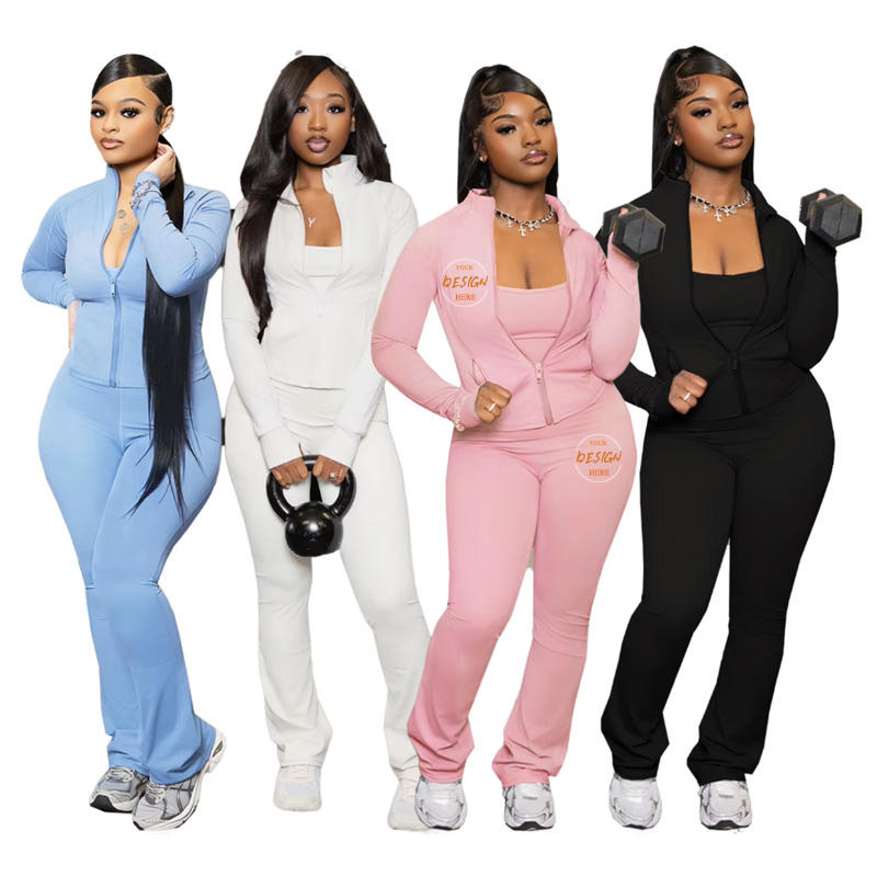 2025 New Fall Winter Women's Jogger Fitness Two Piece Sets Sporty Zip Jacket and Strap Jumpsuits Pants Suit Women Clothing