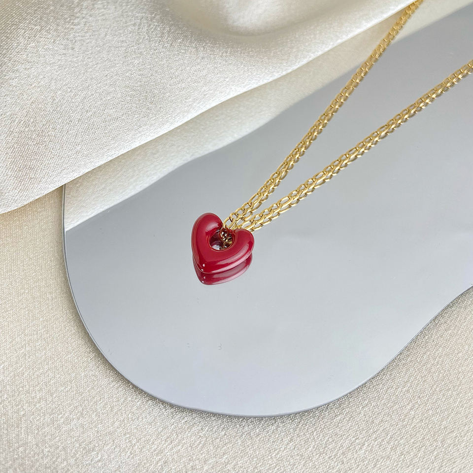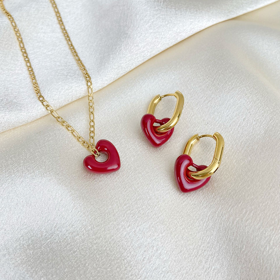 Nuovo Set di Gioielli alla Moda: Collana e Orecchini a Cuore Aperto in Acciaio Inossidabile Placcato Oro 18k, Colore Prugna