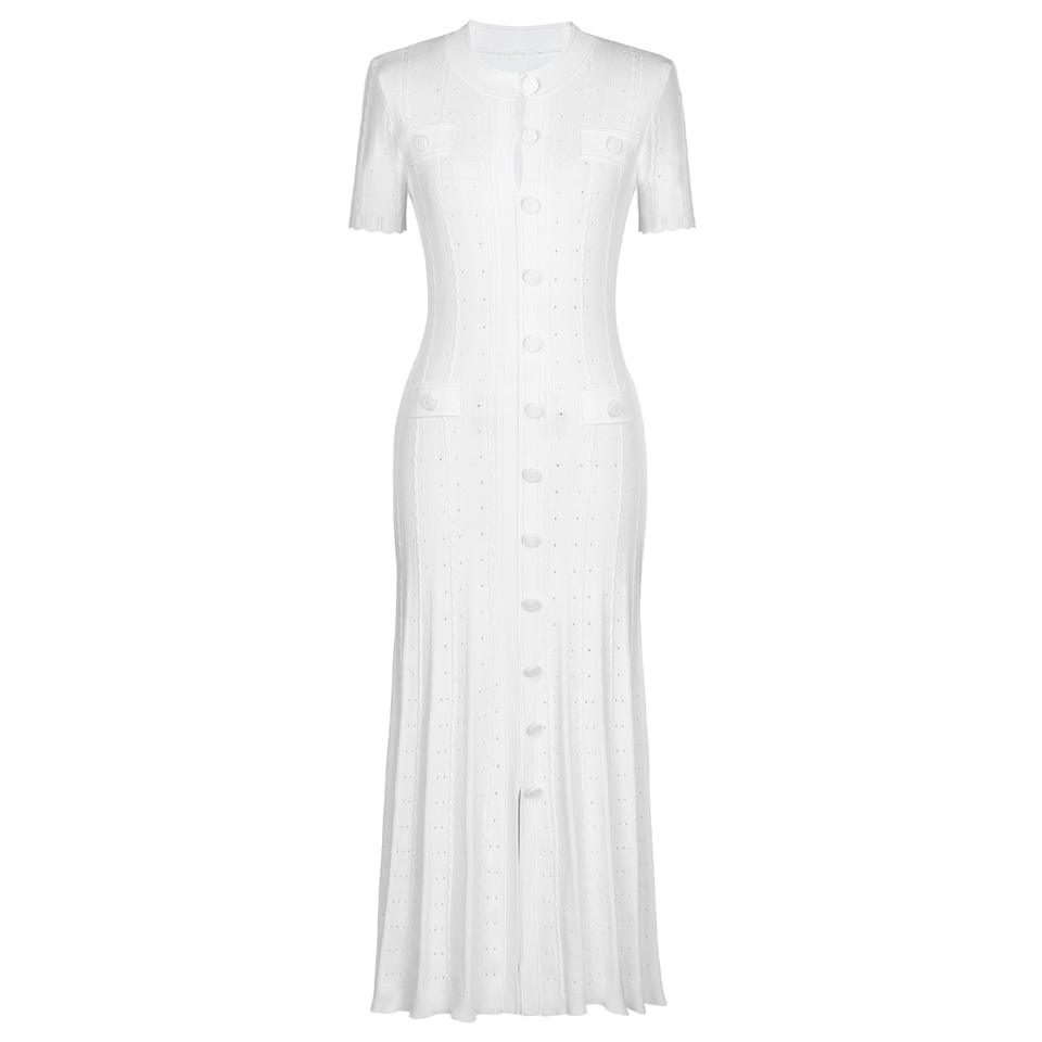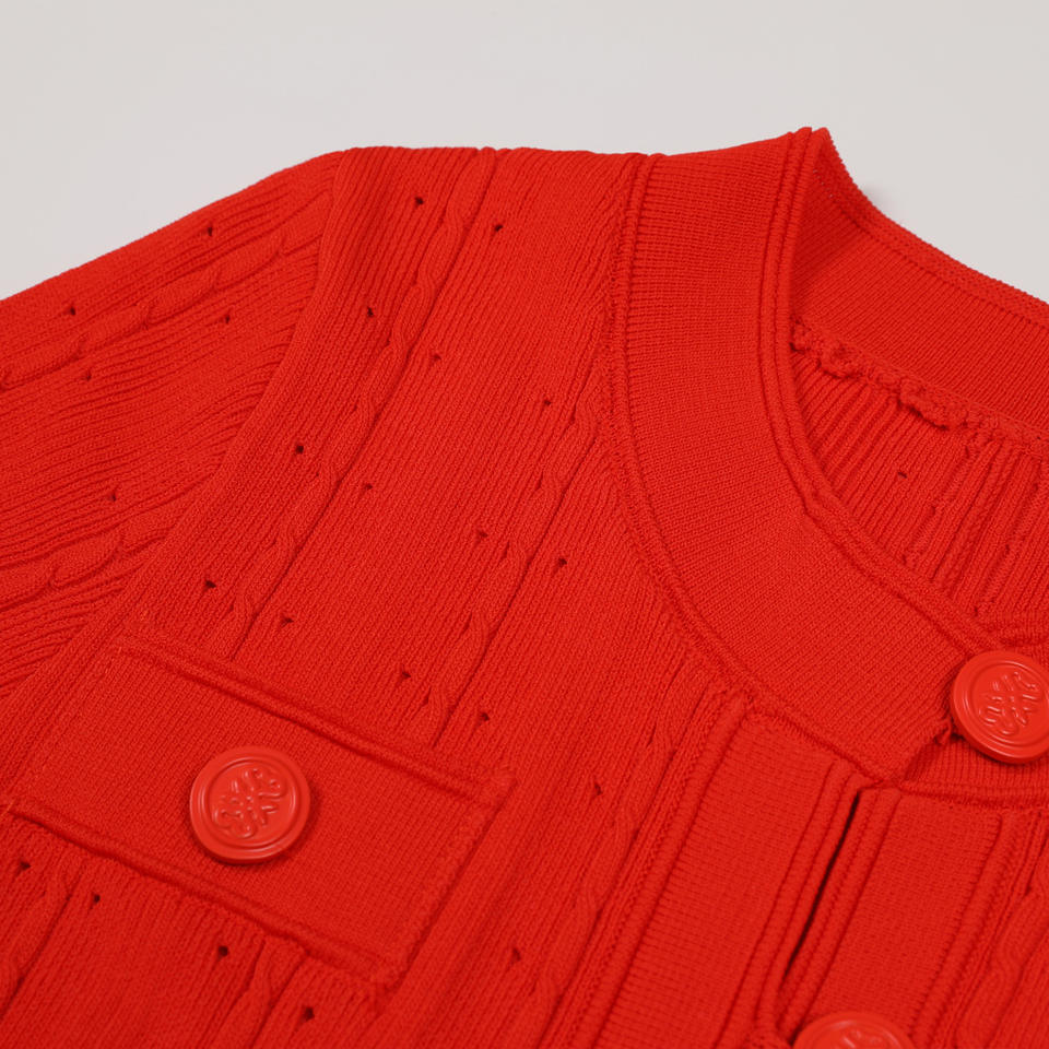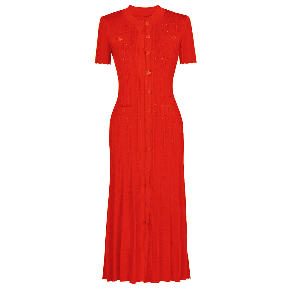 Nuovo Abito Estivo Elegante 2025, Lavorato a Maglia, Collo Tondo, Aderente, Manica Corta, Rosso, Casual