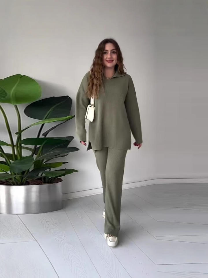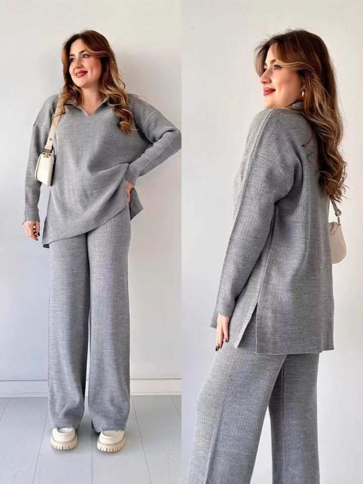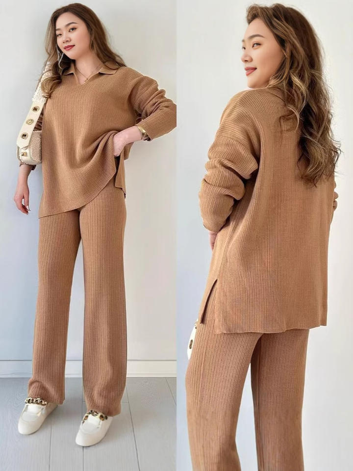 Maglione e pantaloni lavorati a collo a V di nuova moda 2025 Set di due pezzi abbigliamento da donna Set Casual da donna