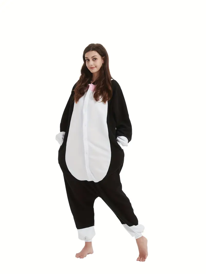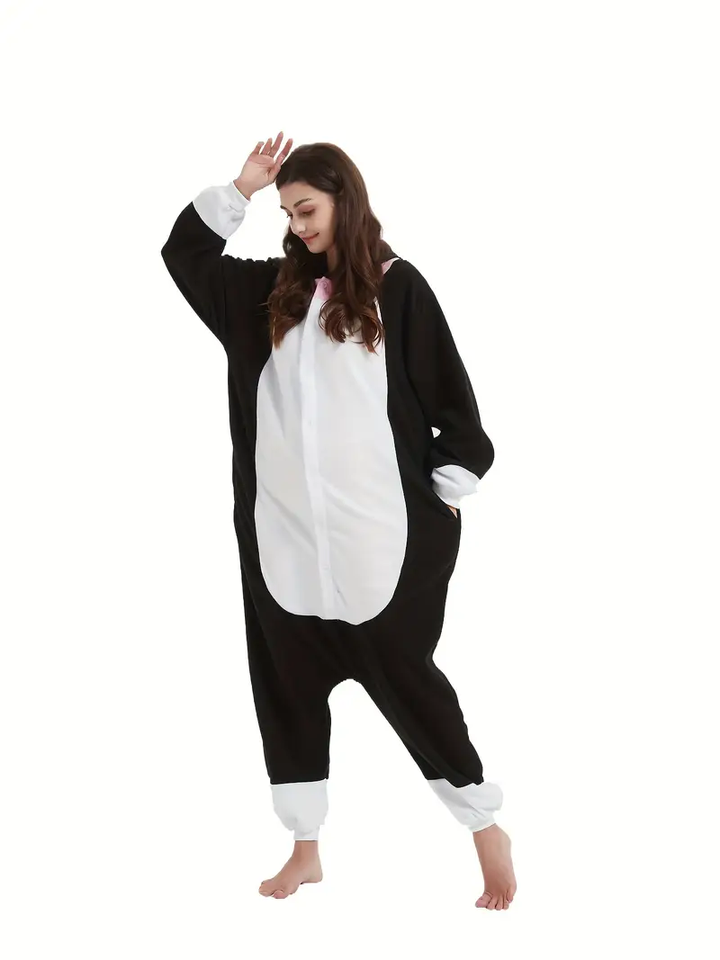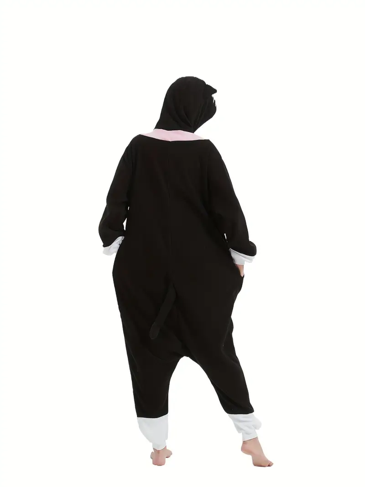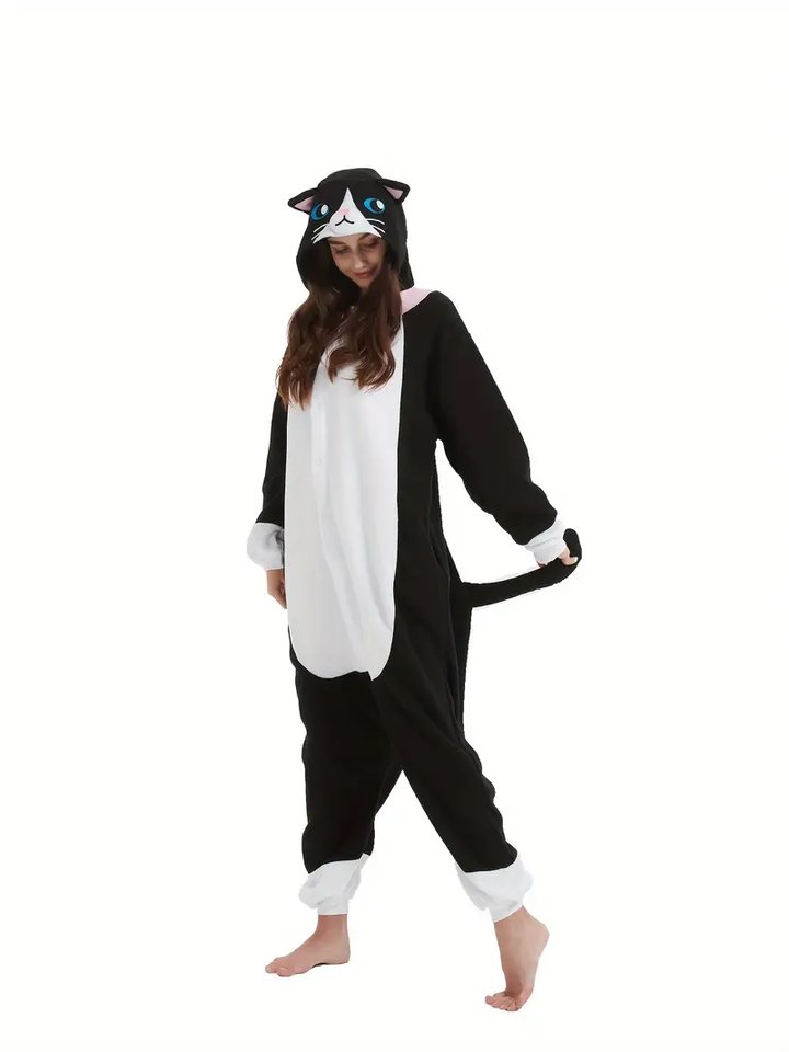 2025 New Fleece Black Cat Onesie Women's Cartoon Animal Pajamas Print Suit Flannel Sleepwear-MOQ 3pcs
