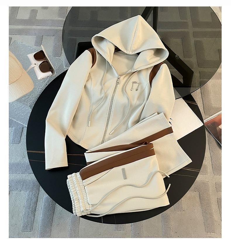 Novità 2025 Completo Sportivo da Donna Due Pezzi con Felpa con Cappuccio e Pantaloni a Gamba Larga