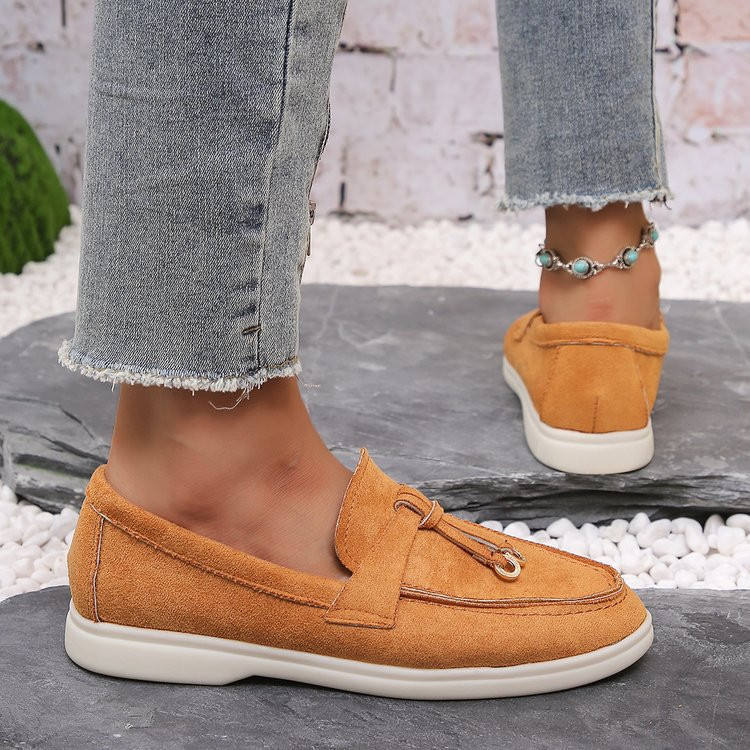 2025 New Hot Sale Fall Bean Shoes Ladies Comfortable Faux Suede Leather Flat Slip-on Casual Thin Walking Shoes for Women