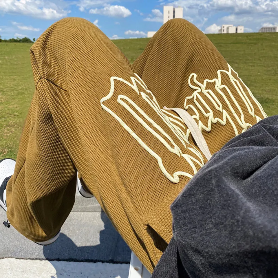 2025 New JT Street Fashion Luxury White Pants Waffle Knit Foaming Jogging Straight Sports Pants Waffle Outdoor Casual Pants Men
