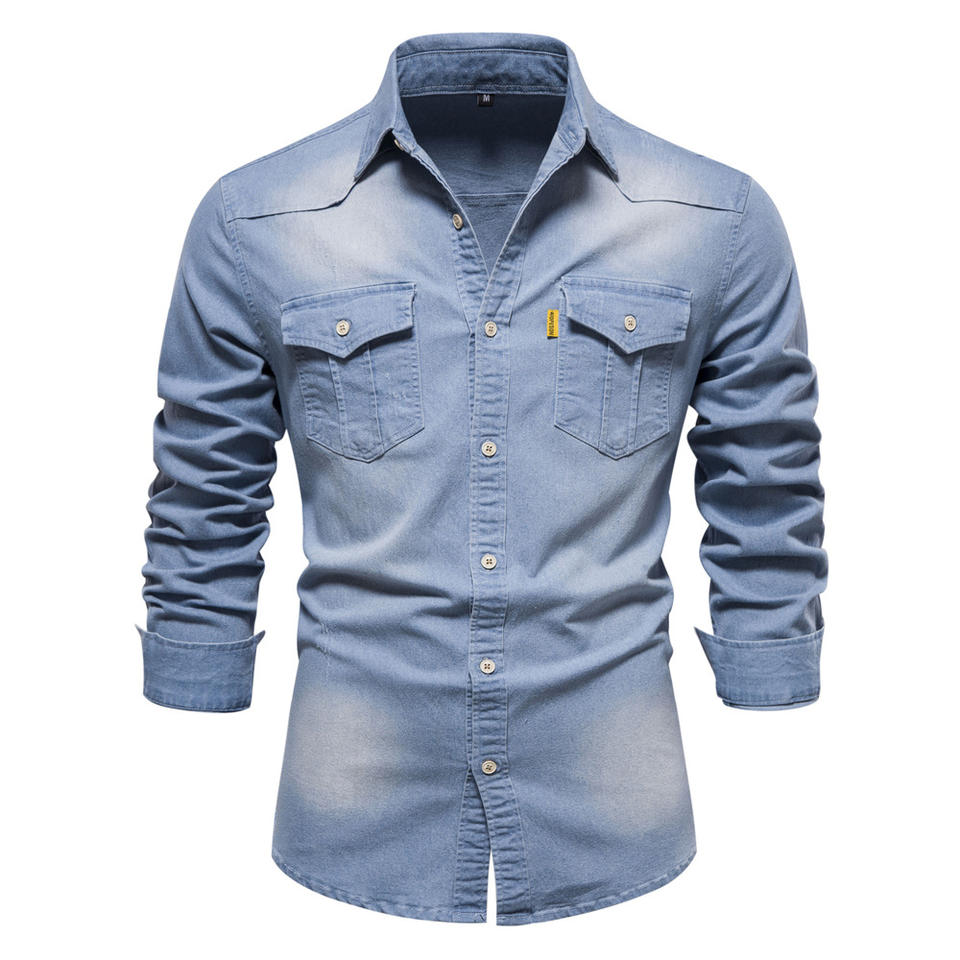 2025 New Lt Light Blue Indigo 6oz Japanese Style Western Chambray Selvedge Denim Casual Men's Jeans Shirt 6 Ounce Cotton