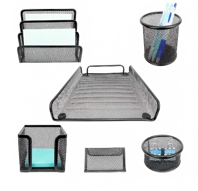 2025 nuovo ufficio in rete metallica 6 pezzi Set di cancelleria scuola e scrivania da ufficio forniture portapenne organizzatori di File articoli di cancelleria