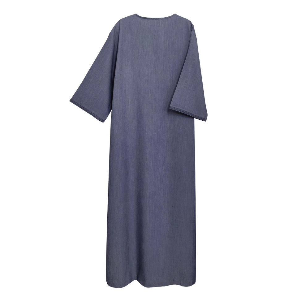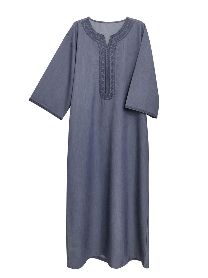 2025 New Middle Eastern Men's Clothing Cross-Border Muslim Mid-Sleeve Embroidered Robe Ethnic Style Moroccan Gown Made Polyester