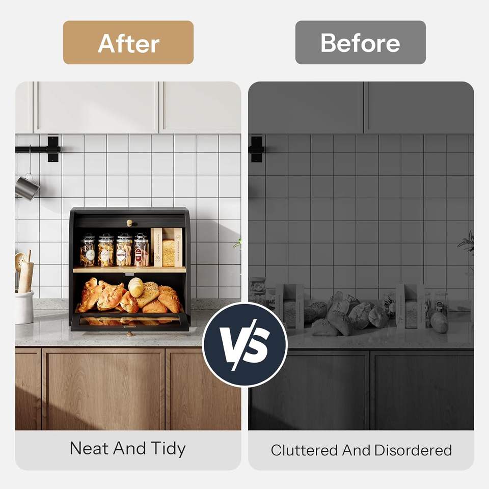 2025 nuovo prodotto controsoffitto grande Breadbox pane con foro di sfiato regolabile porta pane fattoria porta pane con finestra