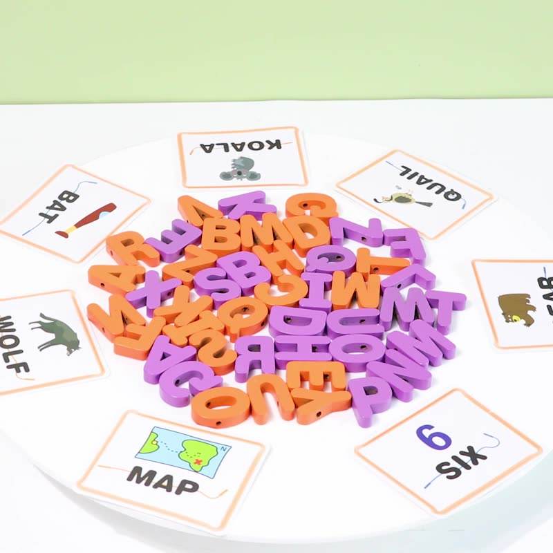 2025 nuovo prodotto di educazione precoce alfabeti ABCD cognizione di legno lettera parola corda di perline gioco Puzzle per bambino giocattolo di apprendimento