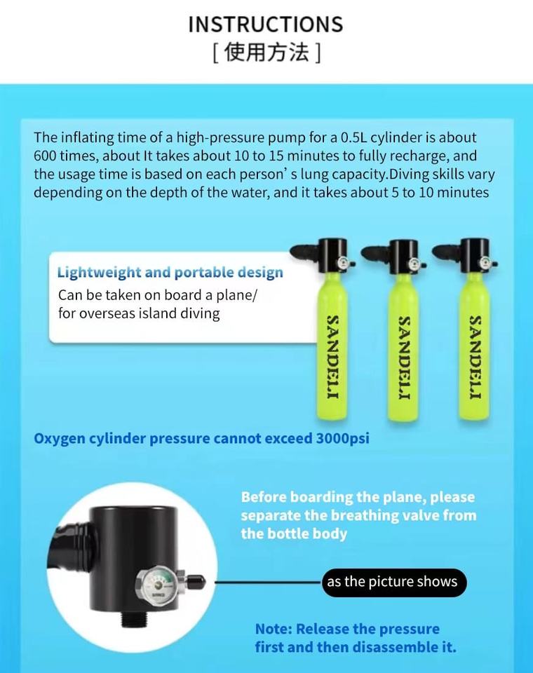 Nuovo Stile 2025: Set Attrezzatura Subacquea SANDELI da 0.5L Mini Scuba, Vendita all'Ingrosso Diretta dalla Fabbrica