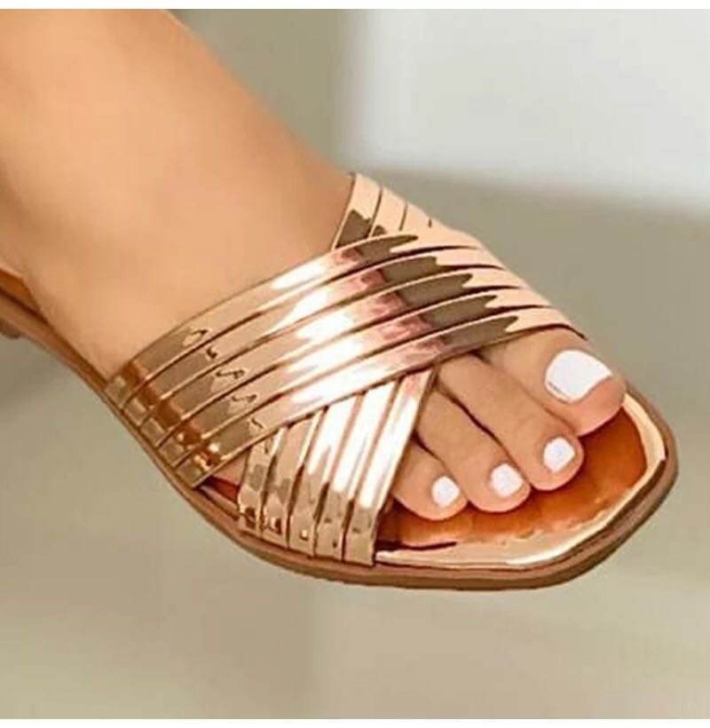 2025 New Trendy Summer Women Sandals Comfortable Casual Outdoor Slip-on Slippers Cheap PU Leather Beach Flat Toe Cushioning