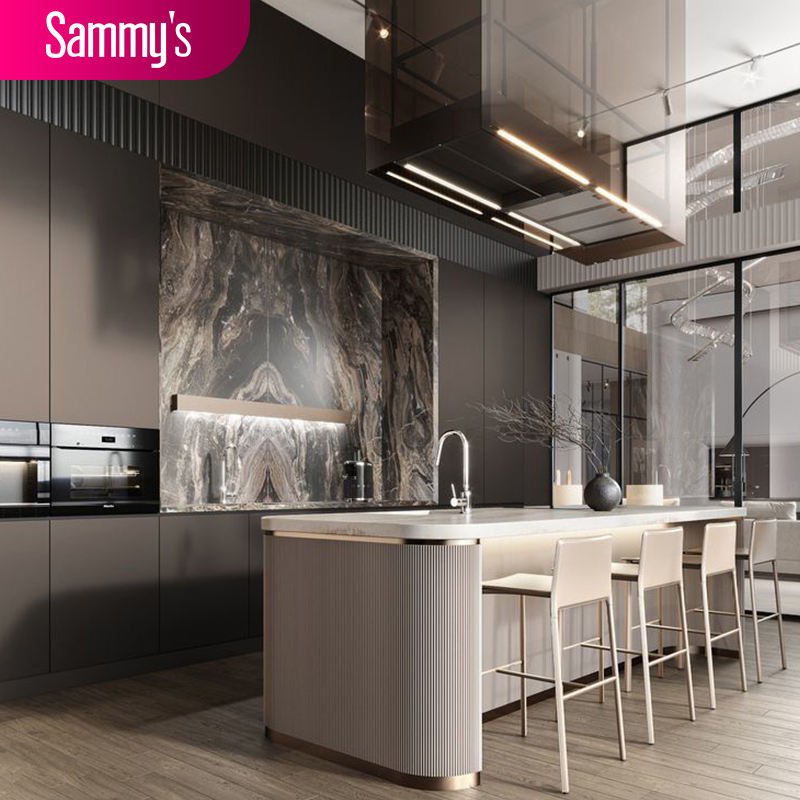 Nuovi Mobili da Cucina Vintage 2025, Armadietti da Cucina in Laminato Tedesco, Rivestimento in Vinile, Armadietti da Cucina Moderni Laccati Lucidi