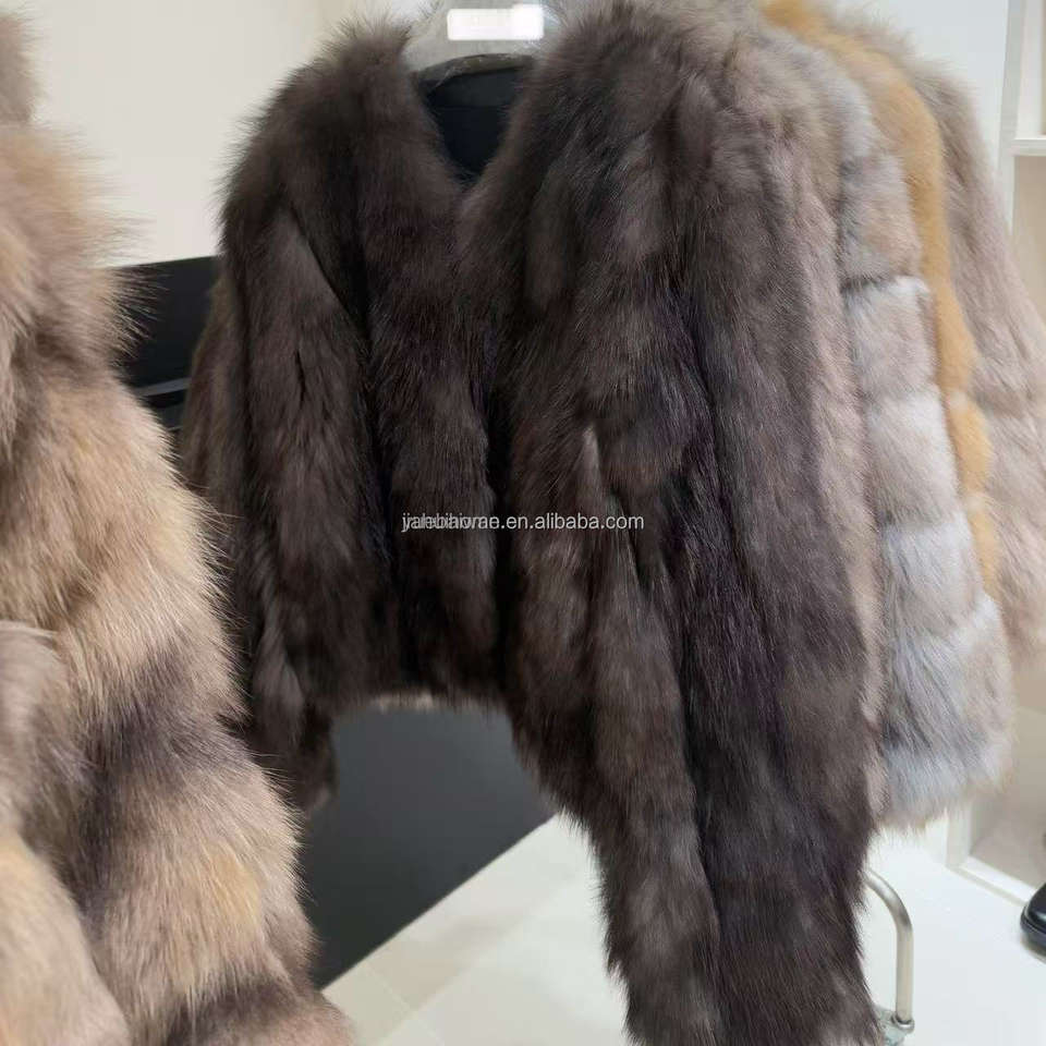 2025 New Winter Women's Artificial Fox Fur Hooded Thick Fashion Customized Short Coat with Animal Print