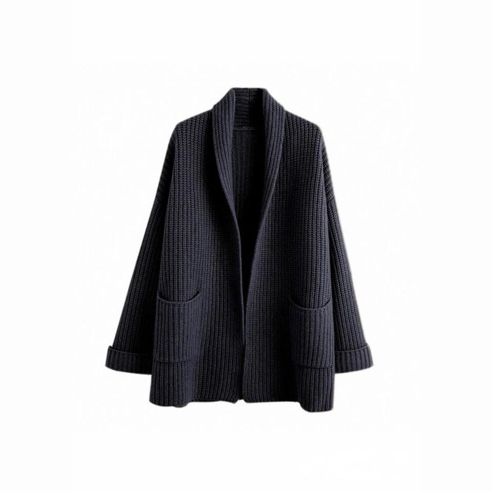 2025 New Women's Casual Loose V-Neck Knitted Cardigan Breathable Autumn Winter Long Thickened Pure Color Jacket Solid Design