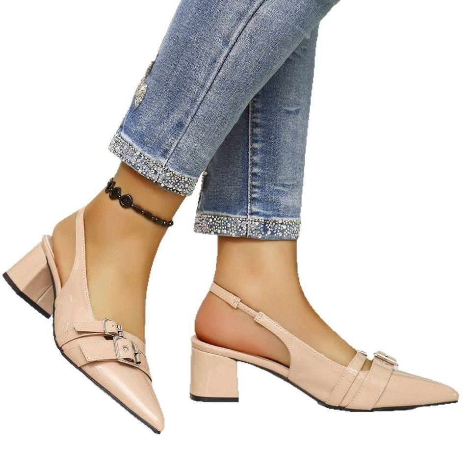 Nuovi Sandali Estivi da Donna 2025 Versatili con Tacco Alto e Cinturino Posteriore, Comodi, Traspiranti, a Punta, con Tacco Grosso, di Tendenza