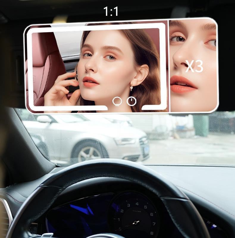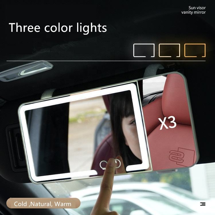 2025 più recente visiera per il trucco per auto illuminata a 3 colori regolabile con luminosità illuminata 1X 3X specchietti per smart Car