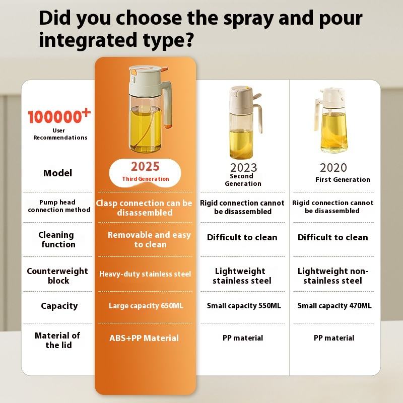 2025 Olive Oil Dispenser Bottle, 22-Ounce Glass Olive Oil Sprayer, 2-in-1 Even Spraying, with Portion Control and Oil Pour Spout