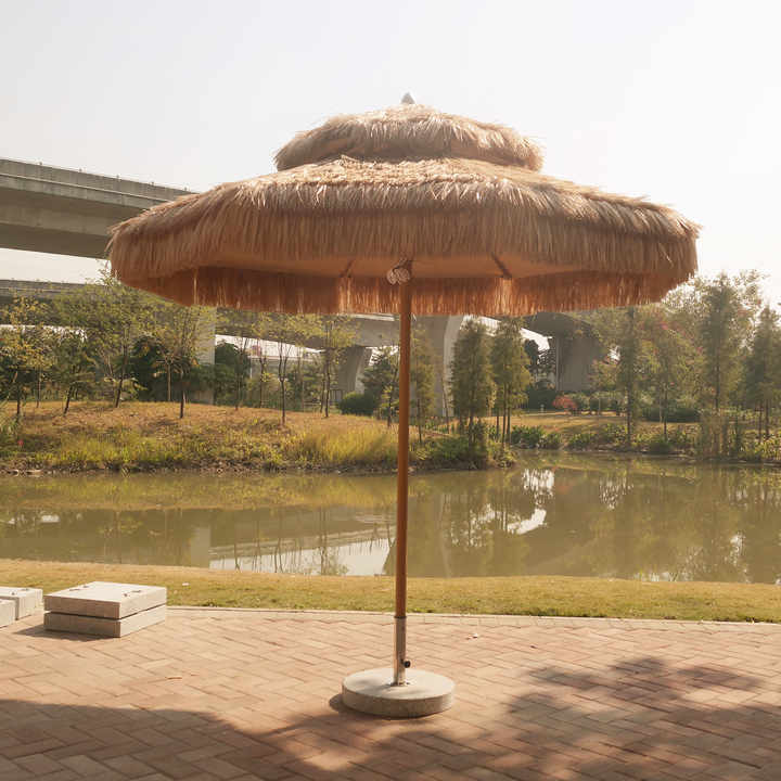 2025 Outdoor Big Size Garden Patio Outdoor Umbrella Double-layer Thatch Umbrella with Base Use for Villa Hotel Pool Beach Cafe