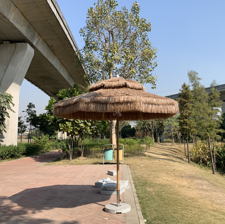 Thatch material:PE plastic strings, ageing-resistant, flame retarded