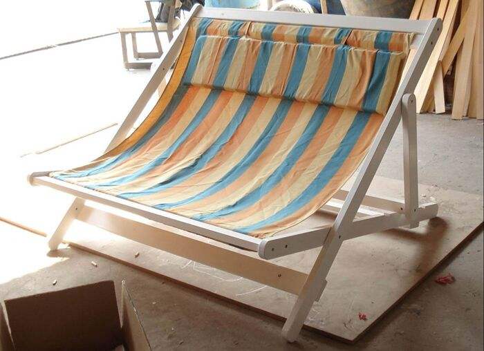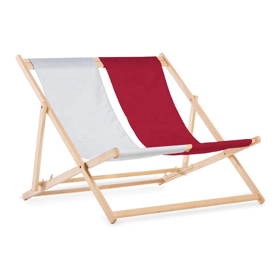 2025 Outdoor Garden Furniture 600D Customized New Design Garden Double Seat Folding Wooden Beech Deck Beach Chair
