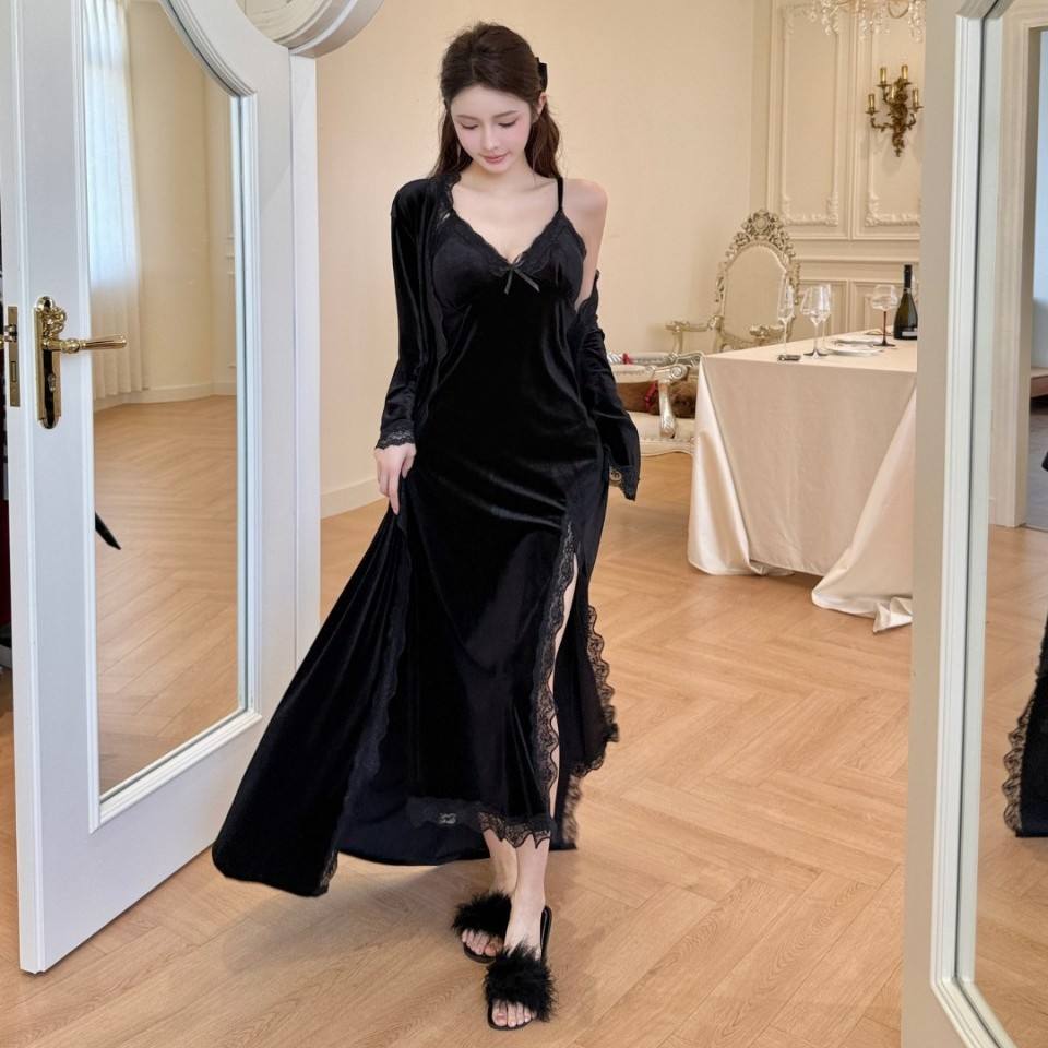 2025 Pajamas Women's Autumn Winter Golden Velvet High-end Nightgown Chest Pad Suspenders Internet Celebrant Live Sexy Home Women