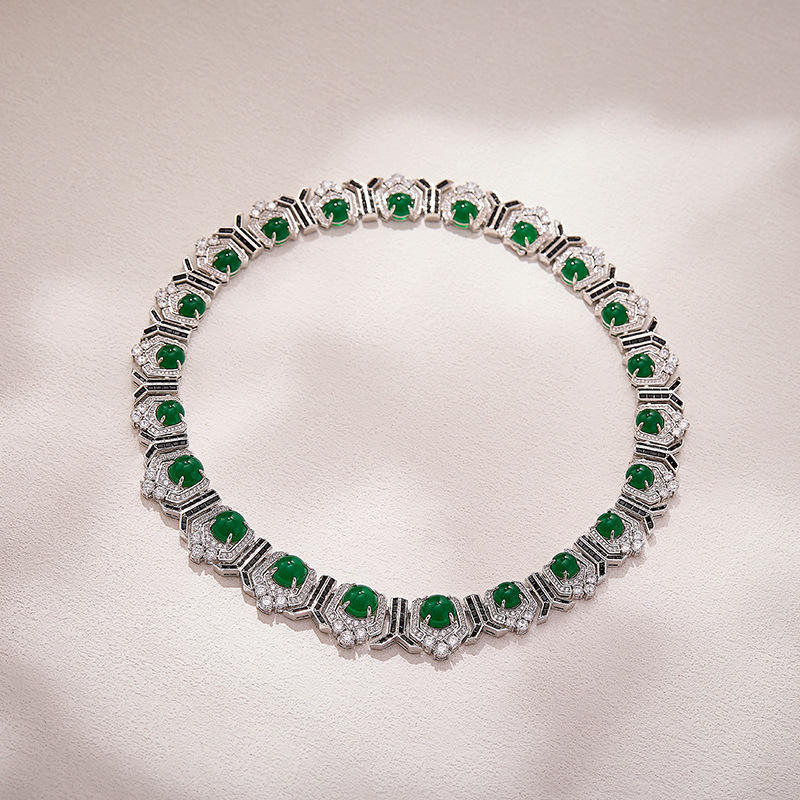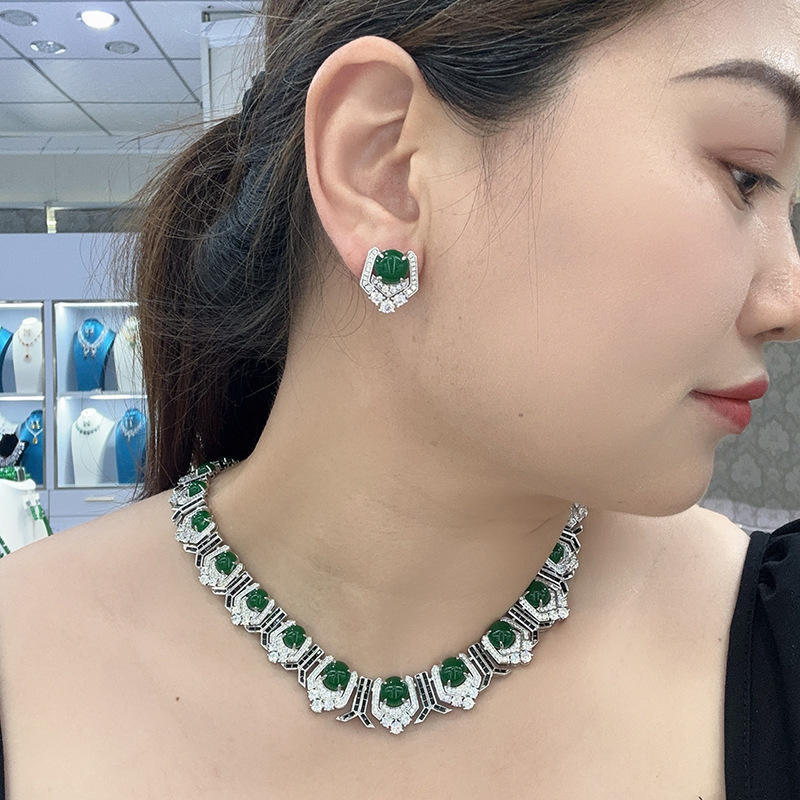2025, Purchase Retro Luxury Women's Green Round Necklaces Brass Jewelry Zirconia Indian Fashion Jewelry Online