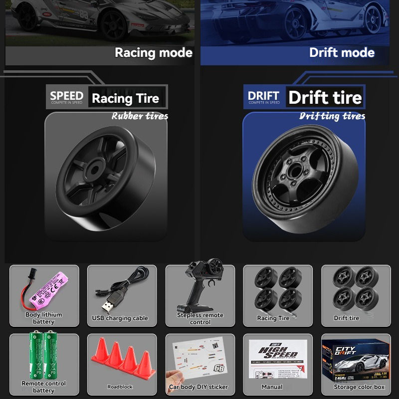 Materiale ABS: L'uso del materiale ABS assicura durata e resistenza agli impatti, rendendolo adatto per gare di drift ad alta velocità.