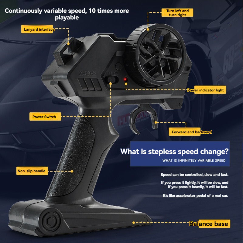 Frequenza 2.4 GHz: L'operazione a frequenza 2.4 GHz offre un controllo stabile e senza interferenze, migliorando l'esperienza di guida complessiva.