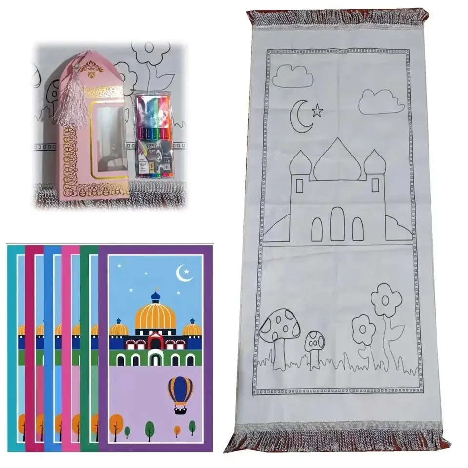 2025 Ramadan Carpet Children's Prayer Rug Gift Set Islamic Muslim Mat Educational Prayer Mat for Kids